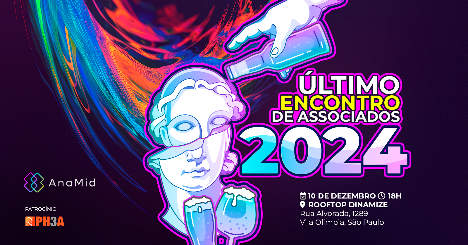 Key Visual e desdobramento de peças para evento de final de ano, 2024.